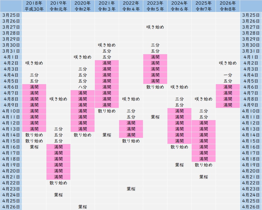 令和8年(2026年)の開花予想(天気情報サイトによる予想)