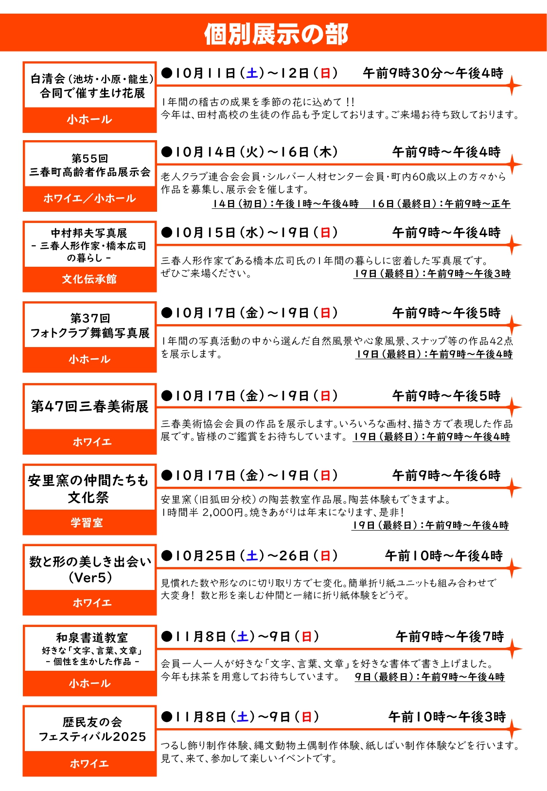 - 三春町文化祭実行委員会事務局(三春交流館「まほら」内)