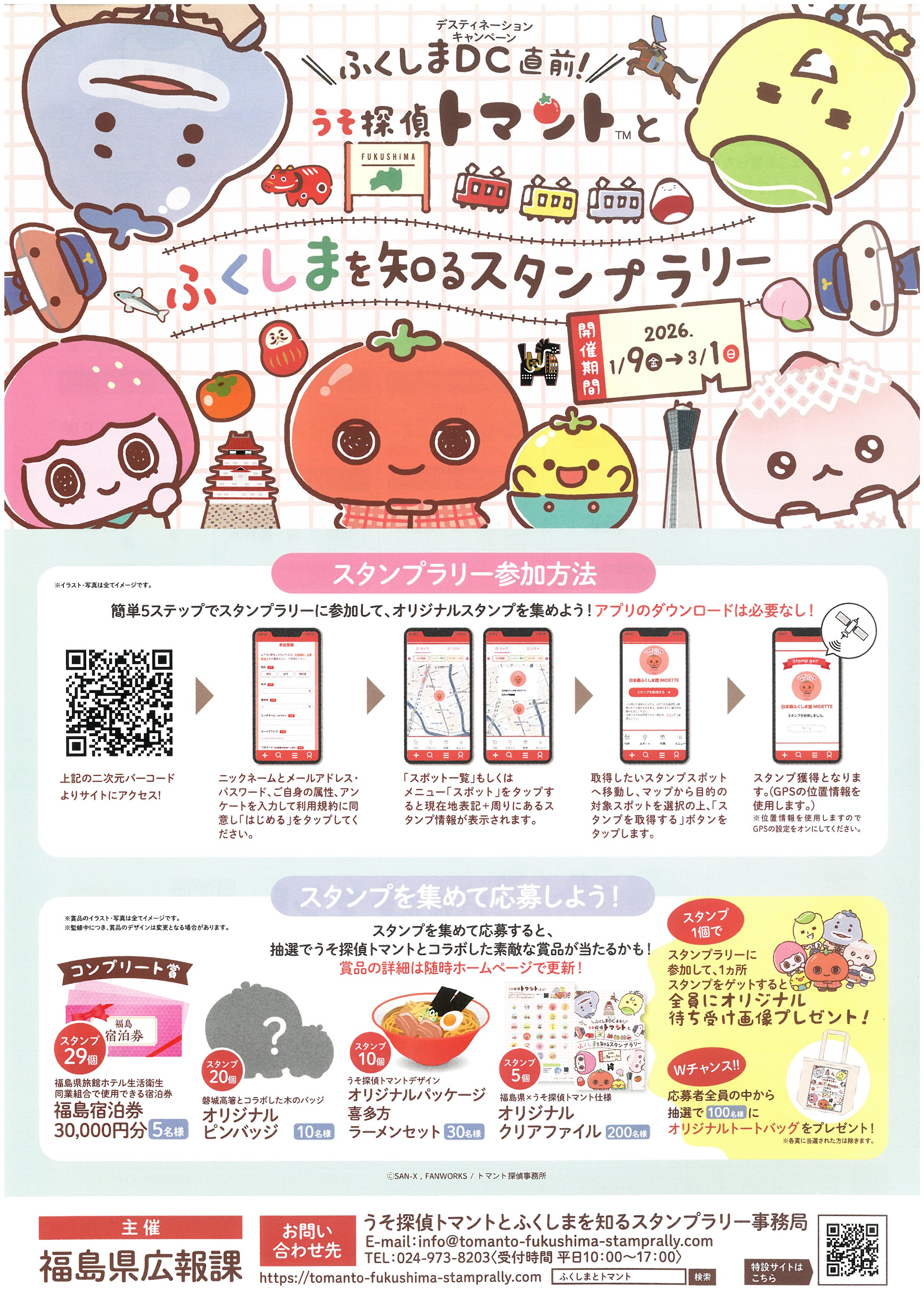 うそ探偵トマントとふくしまを知るスタンプラリーが、2026年1月9日から開催される予定です。